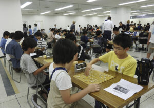 第2回別府市長杯小中学生将棋大会が14日正午、トキハ別府店で開催され、県内の小・中学生約120人が参加した。