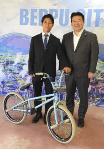 別府市在住の自転車競技選手(BMX)後藤拓実さん(27)は、7月に神奈川県横須賀市で開催されたBMXフリースタイル公式戦「マイナビ ジャパンカップYOKOSUKA」のフラットランドエキスパートで3位に入賞。9月30日午後3時、長野恭紘別府市長に報告した。