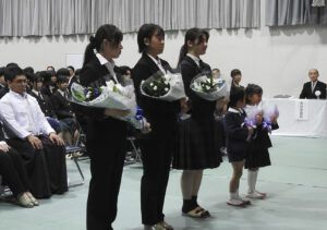 溝部理事長が「初代の溝部ミツヱ先生が、戦後始めた私塾です。『別府高等技藝学校』として設立され、皆さんのご厚情とご支援のおかげで80周年を迎えることが出来ました。先代の後ろ姿を思い浮かべながら、100周年に向けて努力していきたい」と式辞。溝部佳子副理事長が「ミツヱ先生は、戦争のために別府の地で生活に困っている人、戦争未亡人に自ら生きていける人材の育成という崇高な精神を掲げていました。私たちは新たな時代の要請に応えるため、教育や研究の質をさらに高め、地域と世界をつなぐ拠点となるように頑張ります」とあいさつ。