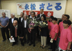 永松氏は「皆さんが一緒になって戦ってくれたおかげです。人口減少対策、交通の足の確保、広域観光などを訴えてきました。いただいたご意見を市政に反映させていきたい。過信することなく、着実に実現に向けて実行していきたい」と話した。