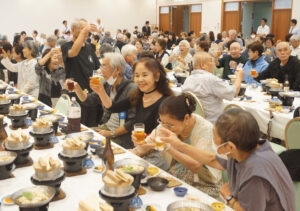 竹の内町自治会(大平順治自治会長)は「令和7年度竹の内町敬老祝賀会」を5日午前11時、ホテル別府パストラルで開催し、163人が出席した。