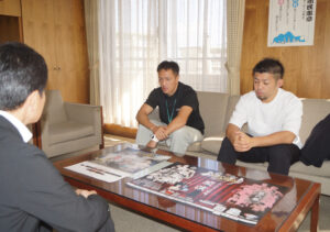 BRAVELY GYM所属の髙橋浩太選手(KO―TA BRAVELY、別府市上下水道局所属、第5代KPKBウェルター級王者、M―1JAPANスーパーウェルター級王者、KOSスーパーウェルター級王者)が第13回KODO―魂動― M―1世界スーパーウェルター級王者決定戦挑戦に伴う出場報告を6日午前10時、別府市上下水道局局長室で行った。