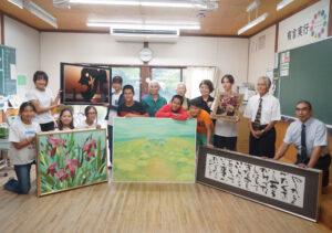 別府市美術協会(平野芳弘会長)は令和7年度別府市美術展大分みらい信用金庫ONSENツーリズム賞5点を10日午後3時30分、市立東山小学校(谷川芳明校長)に寄贈した。寄贈者、市美術協会、市教委、中学校関係者らが出席した。