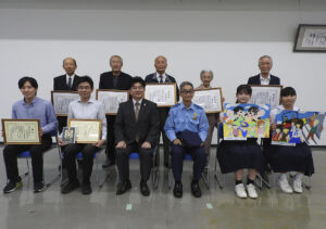 令和7年度日出町防犯協会連合会功労者、全国地域安全運動ポスター・標語入賞者、全国暴力追放運動標語入賞者の表彰式が21日午後4時、日出町役場で行われた。