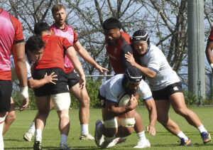 ジャパンラグビーリーグワン所属の横浜キャノンイーグルスが27日から実相寺多目的グラウンドで別府合宿を行っており、28日午後0時半、練習風景をメディアと一般に公開した。横浜キャノンイーグルスは、大分県をセカンダリーホストエリアとしており、別府で毎年キャンプを行っている。11月3日まで。