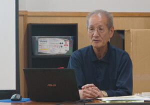 災害の備えとして、普段から準備しておくものなどについても話した。また実際の自然災害の被害写真なども実際に見せながら述べた。