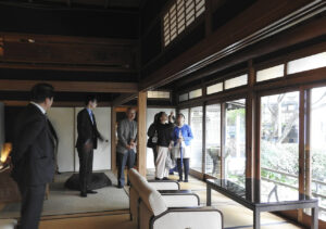 白菊の中で最も古い「菊乃間」を見学する参加者