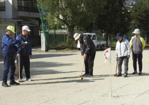 別府市地区体育協会連合会・緑丘地区体育協会(佐藤博章会長)は、令和7年度秋季グラウンドゴルフ大会を3日午前9時15分、市立緑丘小学校グラウンドで開催された。地区内の5町から75人が参加した。