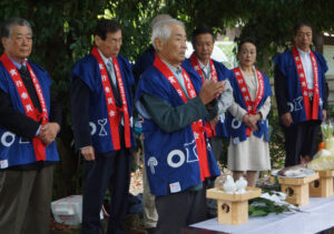 続いて、来賓の長野市長が「コロナなどがありましたが、鬼の岩屋古墳まつりが7年ぶりに皆さんの手で復活し、アップグレードされて開催されることは、ありがたいことです。この雨は、先人の皆さんの嬉し涙と思いましょう」、泉市議、寺岡市教育長、梅木会長がそれぞれあいさつした。