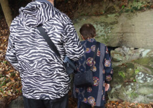 鬼の岩屋見学会で古墳に入っていく来場者ら