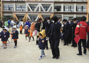 また、津波情報をキャッチし、第2次避難を開始。幼稚園児や児童発達支援センターの子どもたちには、高校の看護専攻科の生徒が手をつなぐなどして、先生と一緒に避難誘導を手伝った。それぞれ事前に決められた避難場所に移動した。