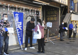 立憲民主党別府支部と別府地区平和運動センターは21日午後5時半、JR別府駅前で18日に発生した大分市佐賀関地域大規模火災に対する募金活動を行った。8人が参加。