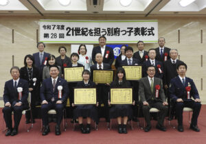 別府市と別府市教育委員会は、令和7年度第28回「21世紀を担う別府っ子表彰式」を26日午後4時、市役所で行った。