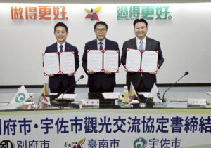 別府市、宇佐市、台湾の台南市はこのほど、観光交流協定を結んだ。協定締結式は、台湾台南市政府で行われた。