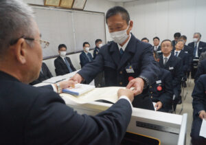 【永年無事故表彰】▽32年=永野栄治▽30年=工藤幸一、中津留多恵次、小野信三▽25年=曽我剛、加藤守、植野雄一郎▽24年=得丸弘至、梶谷忠志▽22年=岡﨑義寿▽21年=山下裕二▽17年=賀来俊幸▽16年=宮本英典▽15年=工藤幸宏、末廣幸太郎、長倉義和▽10年=永塚哲哉、益田浩一、山田末人▽5年=松本浩賜、田口智博