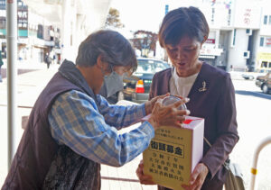 年齢に関係なく、子どもから高齢者までが浄財を入れていた。