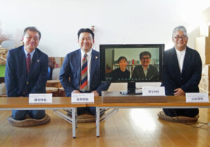 「今回は空間の広がり、世界に開いた穴という表現されており、前回の『目InBeppu』で展開された宇宙そのものが広がるという感覚がある。近くに植物元気炉があり、作品が点から線につながっていき広がっていく。新しいアートの展開ができる」、顧問の長野恭紘別府市長がそれぞれあいさつ。