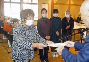 花山会長が「皆さんの協力で8回目を迎え、多くの方が参加してくれました。審査のとき、甲乙つけづらく審査員も苦労していました。回を追うごとに皆さんが上手くなっており、熟考したと思います。今後も続けていこうと思いますので、よろしくお願いします」とあいさつし、受賞者一人ひとりを表彰した。