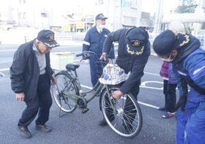 車検のない原付バイクを自転車の延長と考えて乗るライダーが多く、二輪の事故が多いため、街頭点検をして自転車や二輪車の事故を防ごう、と25年以上続いている。