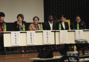 パネルディスカッションでは、安部純子別府市市民課主査、高橋穣里株式会社社蓮華代表、百田瑞江民生委員児童委員、ムハンマド・アジナス・アハメドGENECT代表、藤田ダリーンGENECT代表、神田憲治自立支援センターおおいた事務局長が登壇。参加者からは「1つのことを始めると、続けることが大きな課題。想いがあっても資金的なことなど壁にぶつかってしまう」「みんな違うからこそ、違うパーツが埋められ、1つのパズルが出来ると思う」などの意見が出た。