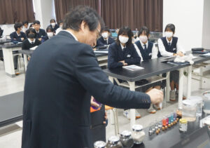 講師は照山代表、補助を事務局の塩月孝子さんが務めた。また授業監修は大友竜也教諭らが行った。