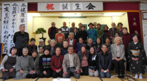 誕生会では、7~12月生まれの該当者26人に祝品、そして卒寿の原田千代子さん(欠席)、米寿の二宮惣二郎さんには祝い金を贈呈した。欠席の原田さんには会終了後、贈呈している。