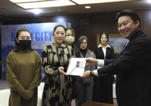 有限会社ちはらコーポレーション(赤嶺リサ代表取締役)は、23日午後5時、別府市役所を訪れて大分市の佐賀関大規模火災の被災者へ義援金として71万3千円を寄託した。