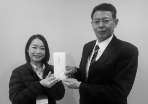 基金を届けた光陽自動車のショールームレディの志水摩美さんは「この基金が交通事故の被害にあわれた方々の、笑顔になるお役にたてればいいなあと思います」とこたえた。
