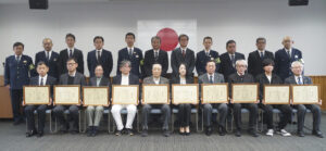 感謝状が贈呈された8団体は▽株式会社イズミゆめタウン別府(寺下泰史支配人)=特殊詐欺被害防止や交通事故防止などの広報啓発活動に貢献▽明倫堂駅前店(井上文子さん)=被留置者の書籍購入に際し、安全かつ適正な留置施設運営に貢献▽さとう皮膚科(佐藤博一院長)、医療法人山本記念会山本病院(山本隆正院長代理で村田重幸事務課長)=被留置者の急な診療要請にも柔軟に対応、留置施設運営に貢献▽別府社交飲食協同組合(赤嶺リサ理事長)=歓楽街に防犯カメラを設置するなど、地域安全活動に貢献▽大分みらい信用金庫(森田展弘理事長代理で阿南善則常務理事)=来店客に特殊詐欺被害防止を呼びかけるなど、地域安全活動に貢献▽別府西中学校(佐藤裕一校長代理で脇淳一教頭)=地域住民と協働して、街頭啓発活動や別府署に大型交通安全ポスターを寄贈するなど、交通事故防止に貢献▽国立病院機構別府医療センター(末永康夫院長)=犯罪事件捜査や検視業務で、迅速かつ適正な捜査活動に貢献。2個人は▽中塚茂さん(93)=逮捕術防具を寄贈するなど、別府署員の現場執行力の強化に貢献▽アーティストのなごりゅさん=特殊詐欺など防止ソングを作成し、各種イベントで披露するなど、地域安全活動に貢献。