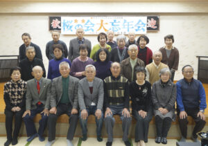 記念撮影後、久住呂和男副会長の司会で進行し、篠﨑会長があいさつ。続いて、約20人の物故者に対して黙とうを捧げた。