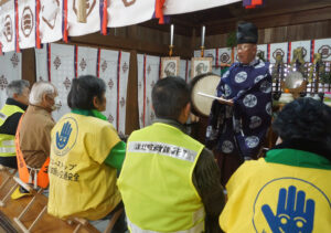 大分県交通安全協会別府支部鶴見分会(会長、大野光章鶴見町自治会長)は交通安全祈願祭を9日午前9時、火男火売神社で行った。