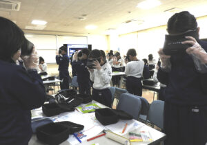 子どもたちがVRゴーグルをつけて