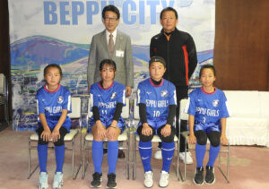 別府・日田・玖珠ガールズが16日午後5時半、別府市役所を訪れて、「全国の仲間と深めよう 競いあおう 第15回びわ湖カップなでしこサッカー大会」の出場を報告した。2年連続、2回目。