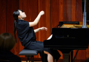 続く演奏は、全国各地の主要オーケストラと共演し多くのコンクールで受賞歴のある鈴木愛美さんが「ピアノ・ソナタ ト長調Hob・XVI:6」(ハイドン)、「平均律クラヴィーア曲集第2巻第22番変ロ短調BWV891」(バッハ)など5曲を演奏し、アンコールは「楽興の時第3番」(シューベルト)を披露した。