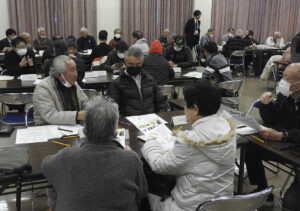 引き続き、グループごとに意見交換を行い、それぞれに事情は違うものの、困っていることを話し、他の共同温泉の取り組みなどを聞いた。
