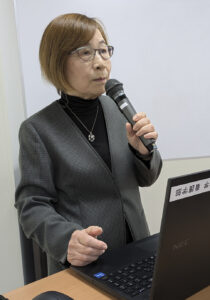 卓話として同大看護科・村中陽子学部長が学部を解説した。テーマは「いま看護師は何を担い、どのように育てられているか」