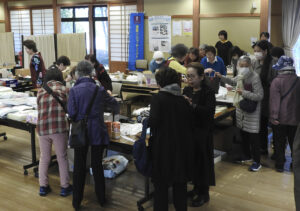 会場には、会員らがもちよった食器やタオル類、洋酒、洋服、靴などが並べられ、訪れた人たちはお気に入りの商品を探した。また、野菜やお米なども安く販売され、次々と売れていった。他にも、クッキーやパンの販売、お茶、コーヒーの提供、ベゴニアやラナンキュラスといった鉢植えもあり、大盛況だった。