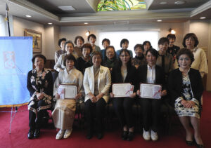 社会で輝く女性たちを表彰するもので、2025年度は、夢を生きる賞として、子育てをしながら看護師を目指して勉強をする坂口絵美さん(45)と笠原亜由美さん(38)。輝く女性賞として着付けボランティアをしながら日本文化の継承に寄与している日出きものマムズの勝山和子代表(77)を表彰した。