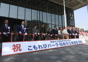 別府市立図書館・こもれびパークが開館し、28日午前9時半、関係者約110人が参加して図書館ラーニングコモンズで式典が行われた。