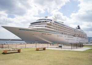 クルーズ客船「クリスタル・シンフォニー」(5万1004㌧、全長238・01㍍、幅30・2㍍、バハマ船籍)が3月31日午前8時30分、別府国際観光港第4埠頭に初寄港した。午後5時、高知港に向けて出港した。