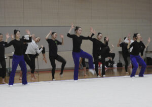 東京女子体育大学の新体操部6人(入学予定者を含む)が3月25日から27日まで、県立別府鶴見丘高校で合宿を行い、チーム大分との合同練習会も行った。