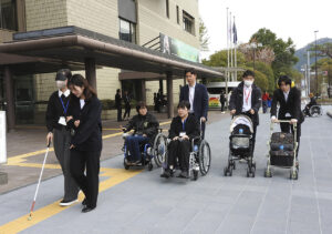 障害福祉課に配属された堀川優太さん(22)は「自分たちが普段気にしていないことでも、要配慮者にとっては一苦労なんだと分かりました。ちょっとした段差や点字ブロックのない場所など危ないと気づきました。過ごしやすい環境をどうつくるか、具体的なビジョンが見えたと思う」とそれぞれ話した。
