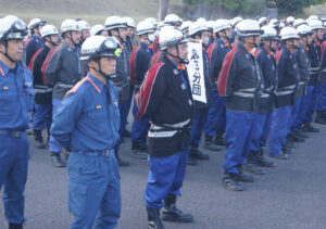 続いて、佐藤市消防団長が配備位置への号令を発した。