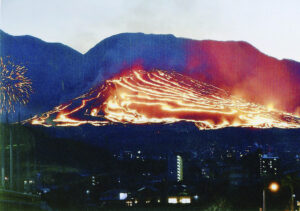扇山火まつりは、日本最大級の火の祭典で春を告げる炎のショー。市内各所で多くの市民や観光客が写真や動画を撮影している。