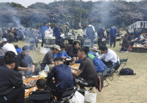 隊員やその家族、協力団体の関係者などを招いて、桜を見ながら親睦を深める会で、約600人が参加した。