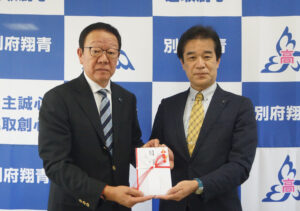 今年度の寄付金は、全学年が取り組む「クロスオーバー探究」でのマイクエスチョンプログラム(1年生)をはじめ、生徒が別府市の「地の利」を活かした探究学習を進めるためのフィールドワークや試作品づくりに活用する予定。同校が実施している「翔青クエスト」の一助となる。