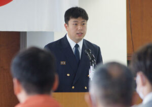 岩田副市長が「7年ぶりの九州大会出場、たいへんおめでとうございます。事前に浜崎消防長から『今回も聞きごたえのある素晴らしい出来栄えです』と話を聞いていました。内容はもちろん、安藤さんの迫力ある発声に圧倒され、さらに発表している表現力には驚かされました。最優秀賞の獲得を誰もが疑う余地のないと思います。24日の鹿児島での九州大会、楽しみです。大分県を代表してぜひ最優秀賞を獲得し、5月の名古屋である全国大会をめざしてください」と講評と激励をした。