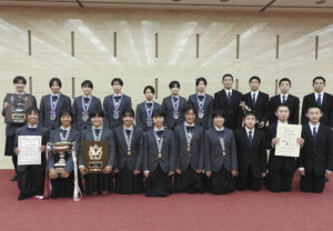 高校女子剣道部は、間津俊亮監督、川浪絆主将、北山美優、茂田幸穏、岩崎愛唯、渡邉愛菜、髙鍋藍、原田志歩各選手が出席。3月に愛知県で開催された「第35回全国高等学校剣道選抜大会」で準優勝を飾った。
